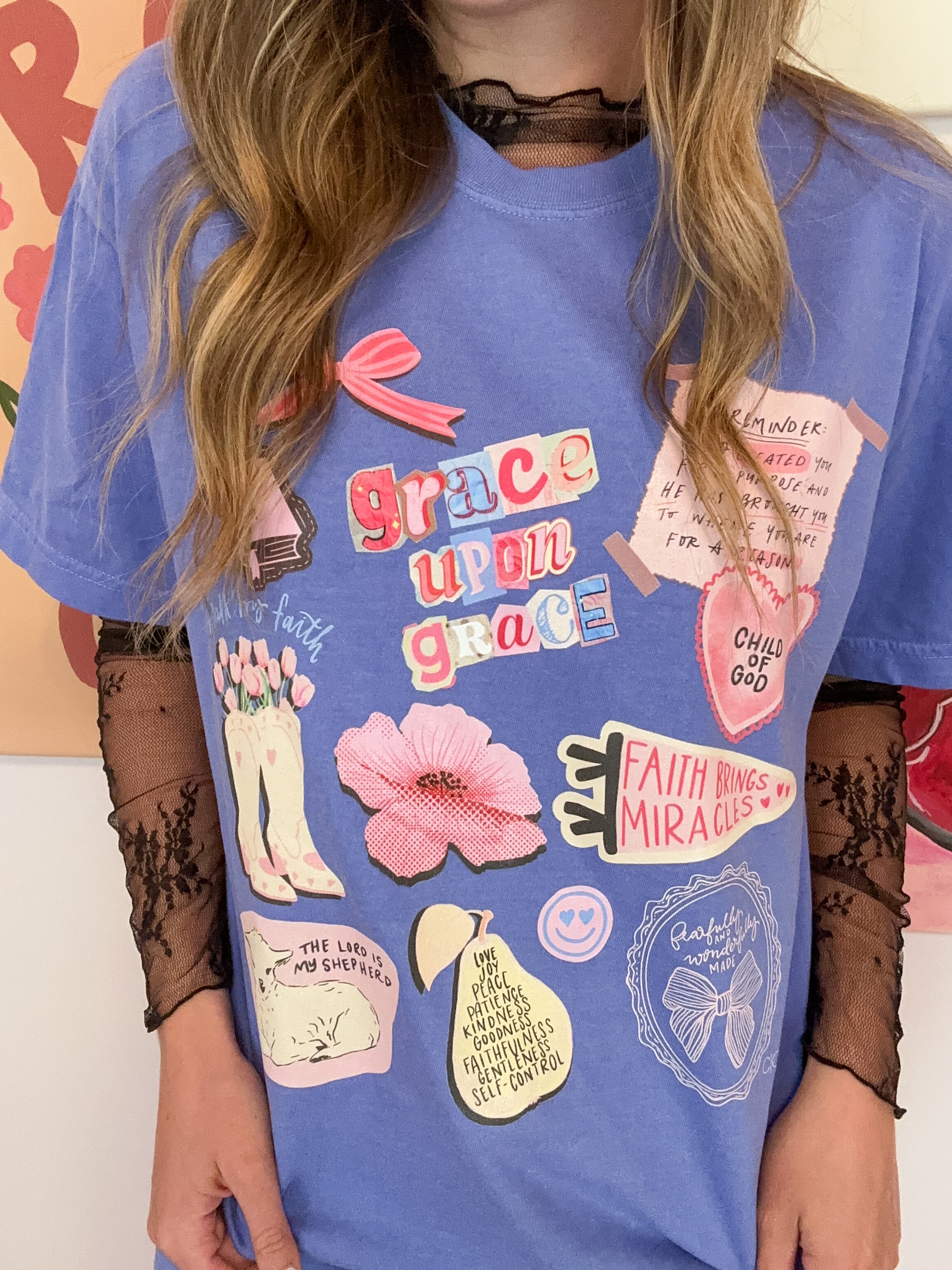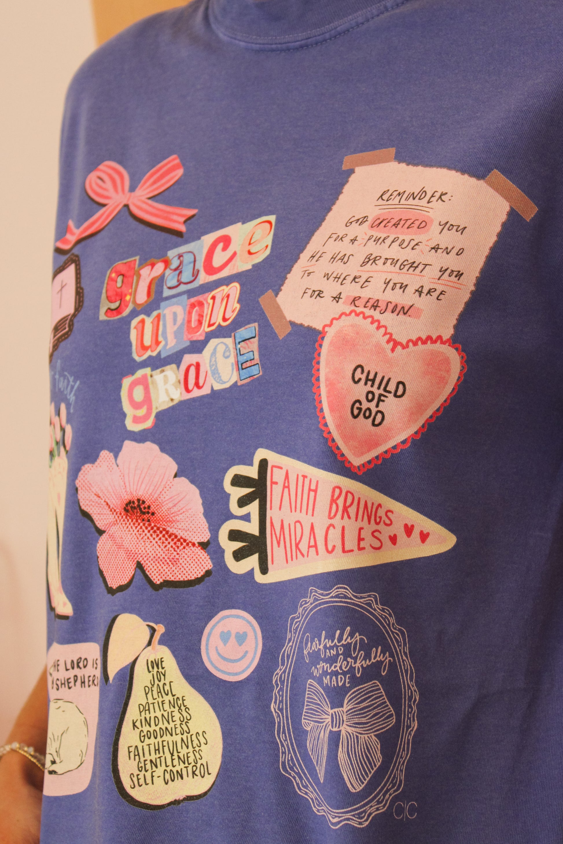 Walk By Faith printed on this periwinkle Comfort Colors shirt combines comfort and cute effortlessly.